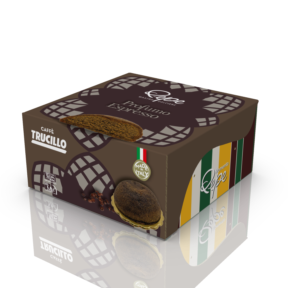 Butter, sugar, eggs, yolk, espresso Trucillo Arabica 100%, condensed milk, shortcrust pastry, almond flour, coffee liquor 40°, Trucillo ground coffee Arabica 100%, powdered yeast, instant coffee, coffee paste (with inverted sugar and espresso Trucillo coffee Arabica 100%), salt and vanilla.